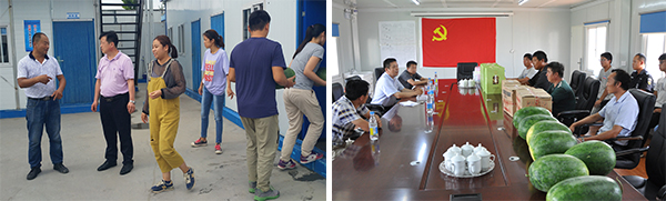 慰問組帶著對辛勤奮戰(zhàn)在一線職工的深切關(guān)心與愛護,每到一個工地,都會詳細察看、詢問工程建設情況,強調(diào)高溫天氣下的安全生產(chǎn),叮囑有關(guān)負責人合理調(diào)整勞動作業(yè)時間,做好后勤保障工作,加強對飲用水、食品和工地食堂的衛(wèi)生管理,確保一線人員身體健康。同時,慰問組為各項目部送去了茶葉、綠豆、白糖、西瓜、毛巾、香皂等防暑降溫品,把清涼送到了一線人員的心坎上。各項目部一致表示,將按照公司領(lǐng)導的要求,認真做好安全生產(chǎn)工作和施工現(xiàn)場防暑降溫工作,確保工程建設順利開展。