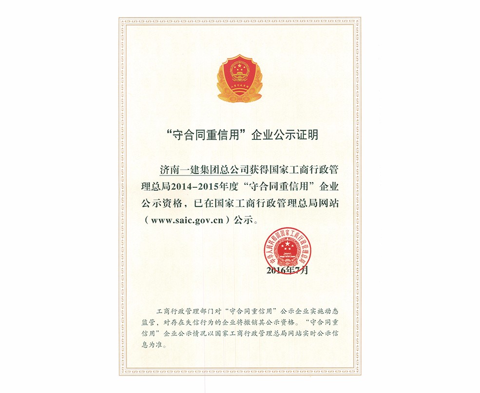 全國守合同重信用企業(yè)